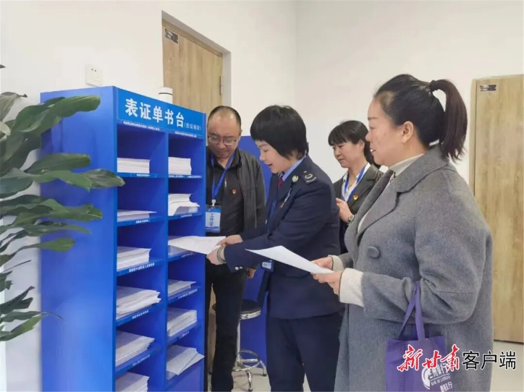 兰州市城关区纪委监委干部在区政务服务中心走访了解为基层减负情况。(资料图)